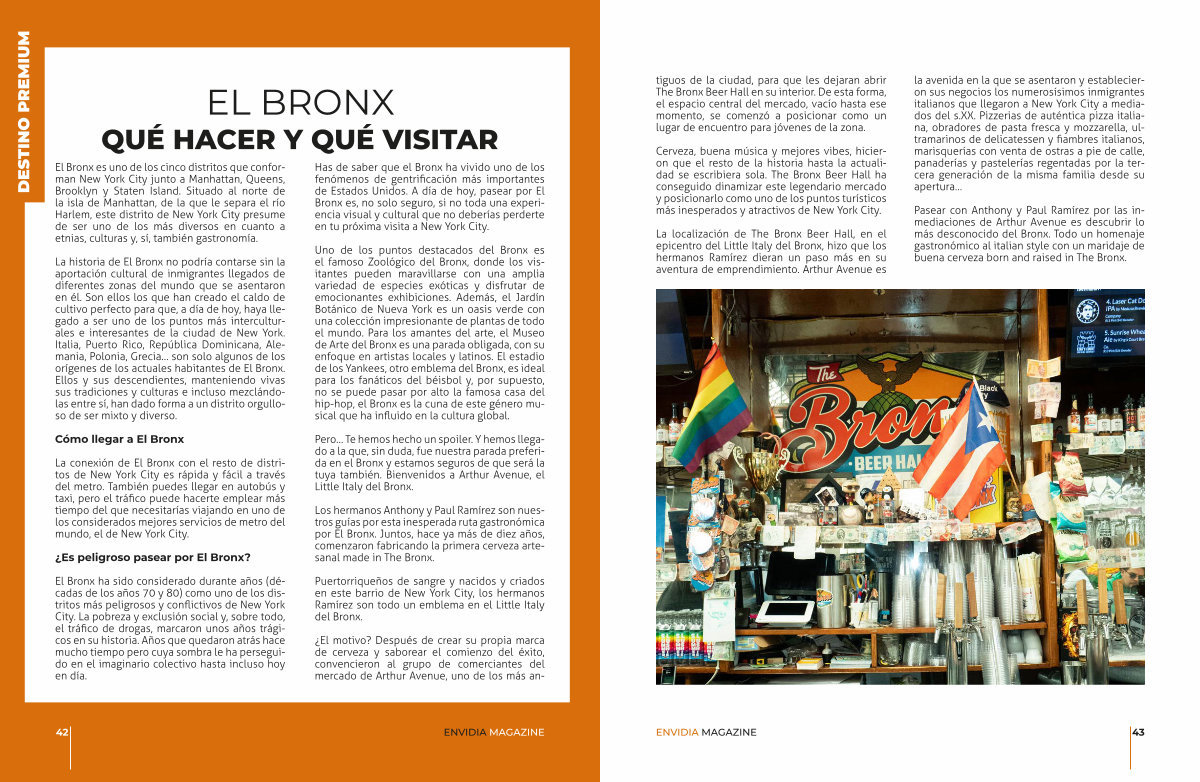 La localización de The Bronx Beer Hall , en el epicentro del Little Italy del Bronx , hizo que los hermanos Ramírez dieran un paso más en su aventura de emprendimiento . Arthur Avenue es la avenida en la que se asentaron y establecieron sus negocios los numerosísimos inmigrantes italianos que llegaron a New York City a mediados del s . XX . Pizzerias de auténtica pizza italiana , obradores de pasta fresca y mozzarella , ul- ������������������������������������������������ marisquerías con venta de ostras a pie de calle , panaderías y pastelerías regentadas por la tercera generación de la misma familia desde su apertura …