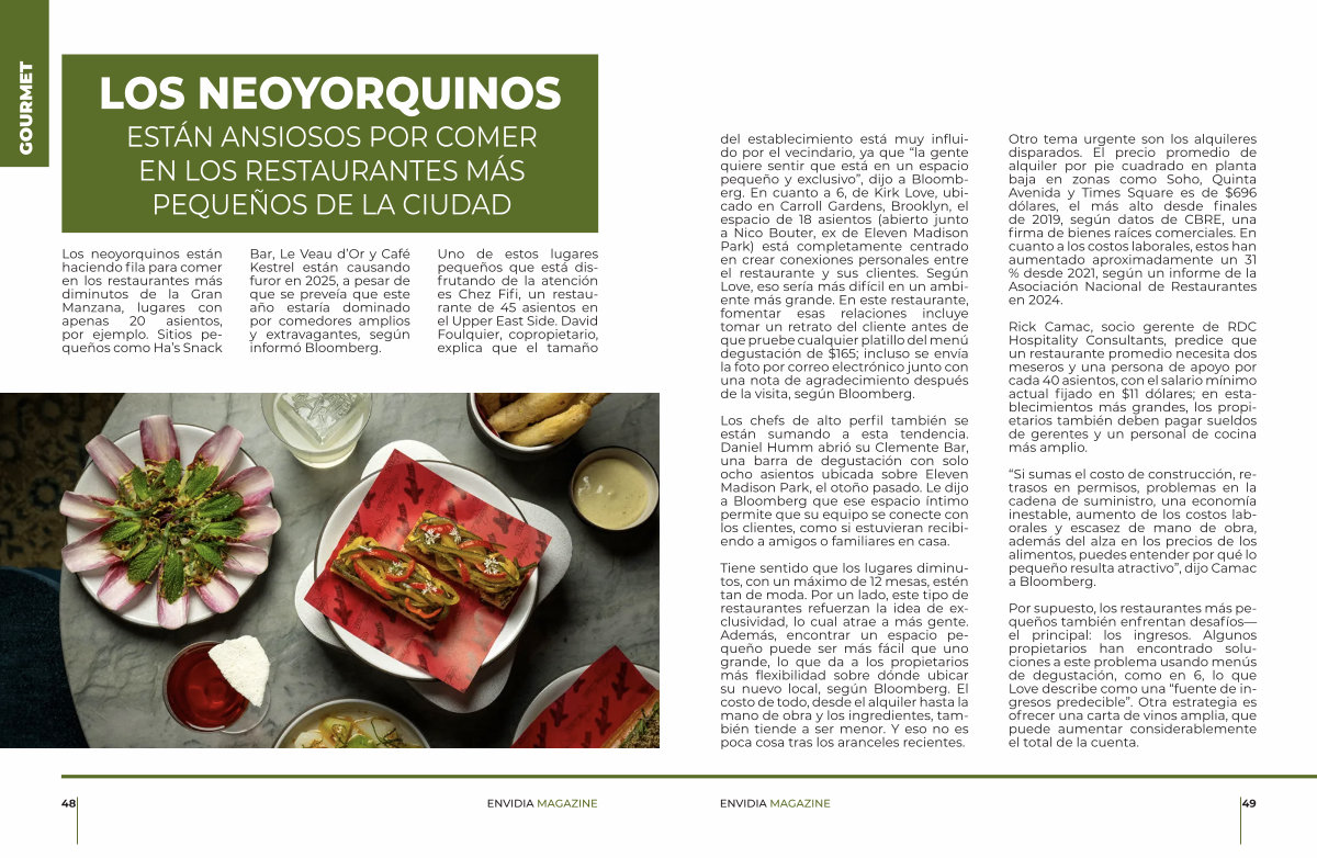 Tiene sentido que los lugares diminutos, con un máximo de 12 mesas, estén tan de moda. Por un lado, este tipo de restaurantes refuerzan la idea de exclusividad, lo cual atrae a más gente. Además, encontrar un espacio pequeño puede ser más fácil que uno grande, lo que da a los propietarios más flexibilidad sobre dónde ubicar su nuevo local, según Bloomberg. El costo de todo, desde el alquiler hasta la mano de obra y los ingredientes, también tiende a ser menor. Y eso no es poca cosa tras los aranceles recientes.