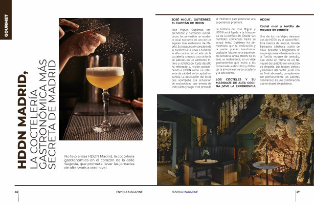 José Miguel Gutiérrez , emprendedor y bartender autodidacta , ha convertido un modesto local nocturno en uno de los lugares más exclusivos de Madrid . Su búsqueda incansable de la excelencia lo llevó a fusionar la alta cocina con el arte de la coctelería , creando una sinfonía de sabores en un ambiente íntimo y sofisticado . Cada desafío ha reforzado su visión , posicionando a HDDN como un referente de calidad en la capital española . La decoración del local , que acompaña esa sensación de exclusividad que emana de cada plato y trago , está pensada al milímetro para potenciar una experiencia premium .