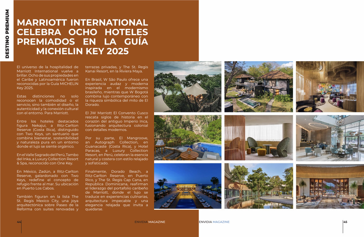 El universo de la hospitalidad de Marriott International vuelve a brillar. Ocho de sus propiedades en el Caribe y Latinoamérica fueron reconocidas por la Guía MICHELIN Key 2025.