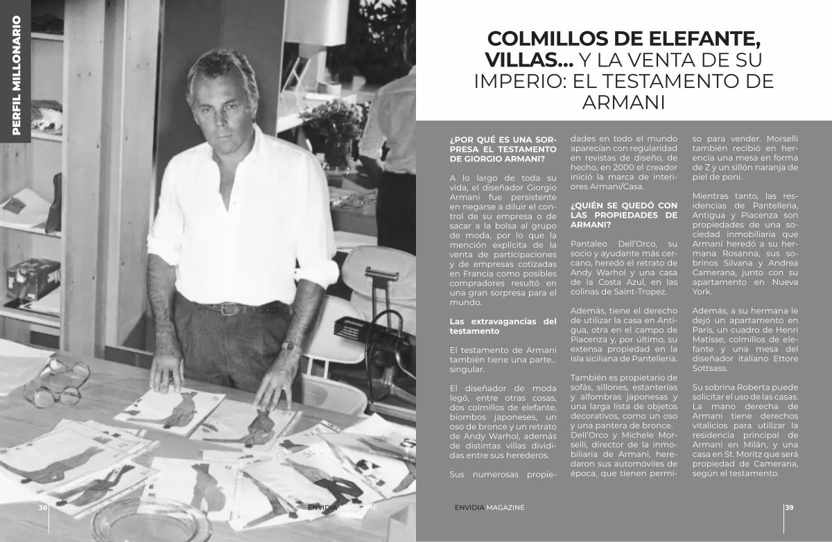 COLMILLOS DE ELEFANTE, VILLAS … Y LA VENTA DE SU IMPERIO: EL TESTAMENTO DE ARMANI