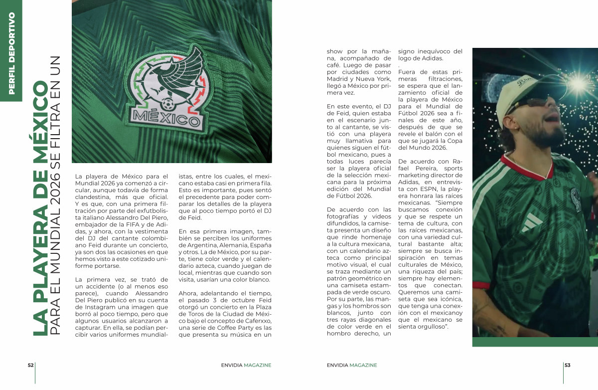 La playera de México para el Mundial 2026 ya comenzó a circular, aunque todavía de forma clandestina, más que oficial. Y es que, con una primera filtración por parte del exfutbolista italiano Alessandro Del Piero, embajador de la FIFA y de Adidas, y ahora, con la vestimenta del DJ del cantante colombiano Feid durante un concierto, ya son dos las ocasiones en que hemos visto a este cotizado uniforme portarse.