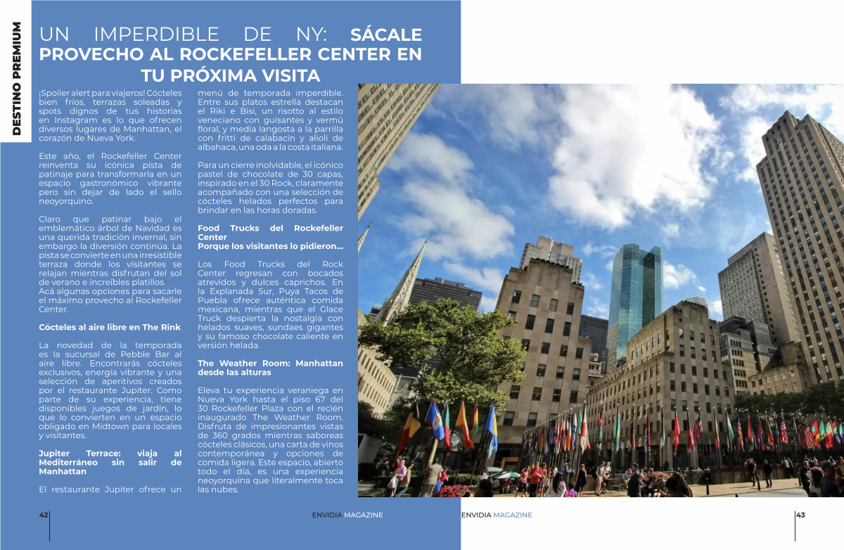 Claro que patinar bajo el emblemático árbol de Navidad es una querida tradición invernal, sin embargo la diversión continúa. La pista se convierte en una irresistible terraza donde los visitantes se relajan mientras disfrutan del sol de verano e increíbles platillos. Acá algunas opciones para sacarle el máximo provecho al Rockefeller Center.