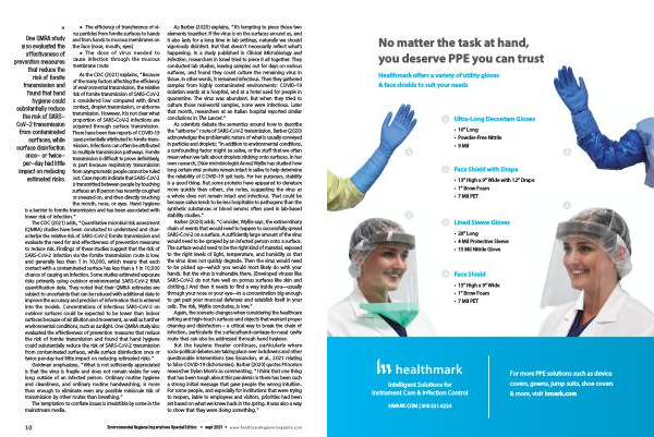 As the CDC ( 2021 ) explains , “ Because of the many factors affecting the efficiency of environmental transmission , the relative risk of fomite transmission of SARS-CoV-2 is considered low compared with direct contact , droplet transmission , or airborne transmission . However , it is not clear what proportion of SARS-CoV-2 infections are acquired through surface transmission . There have been few reports of COVID-19 cases potentially attributed to fomite transmission . Infections can often be attributed to multiple transmission pathways . Fomite transmission is difficult to prove definitively , in part because respiratory transmission from asymptomatic people cannot be ruled out . Case reports indicate that SARS-CoV-2 is transmitted between people by touching surfaces an ill person has recently coughed or sneezed on , and then directly touching the mouth , nose , or eyes . Hand hygiene is a barrier to fomite transmission and has been associated with lower risk of infection .”