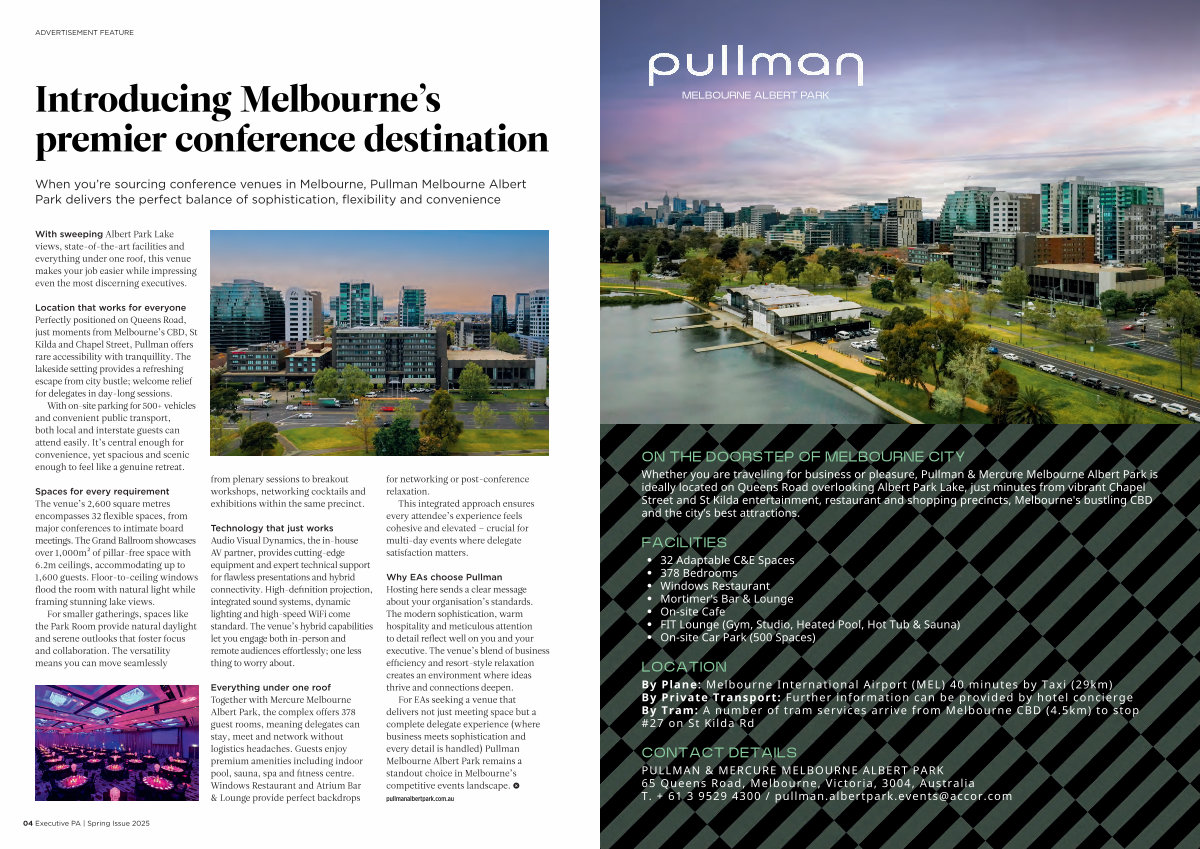 PULLMAN & MERCURE MELBOURNE ALBERT PARK 65 Queens Road, Melbourne, Victoria, 3004, Australia T. + 61 3 9529 4300 / pullman. albertpark. events @ accor. com