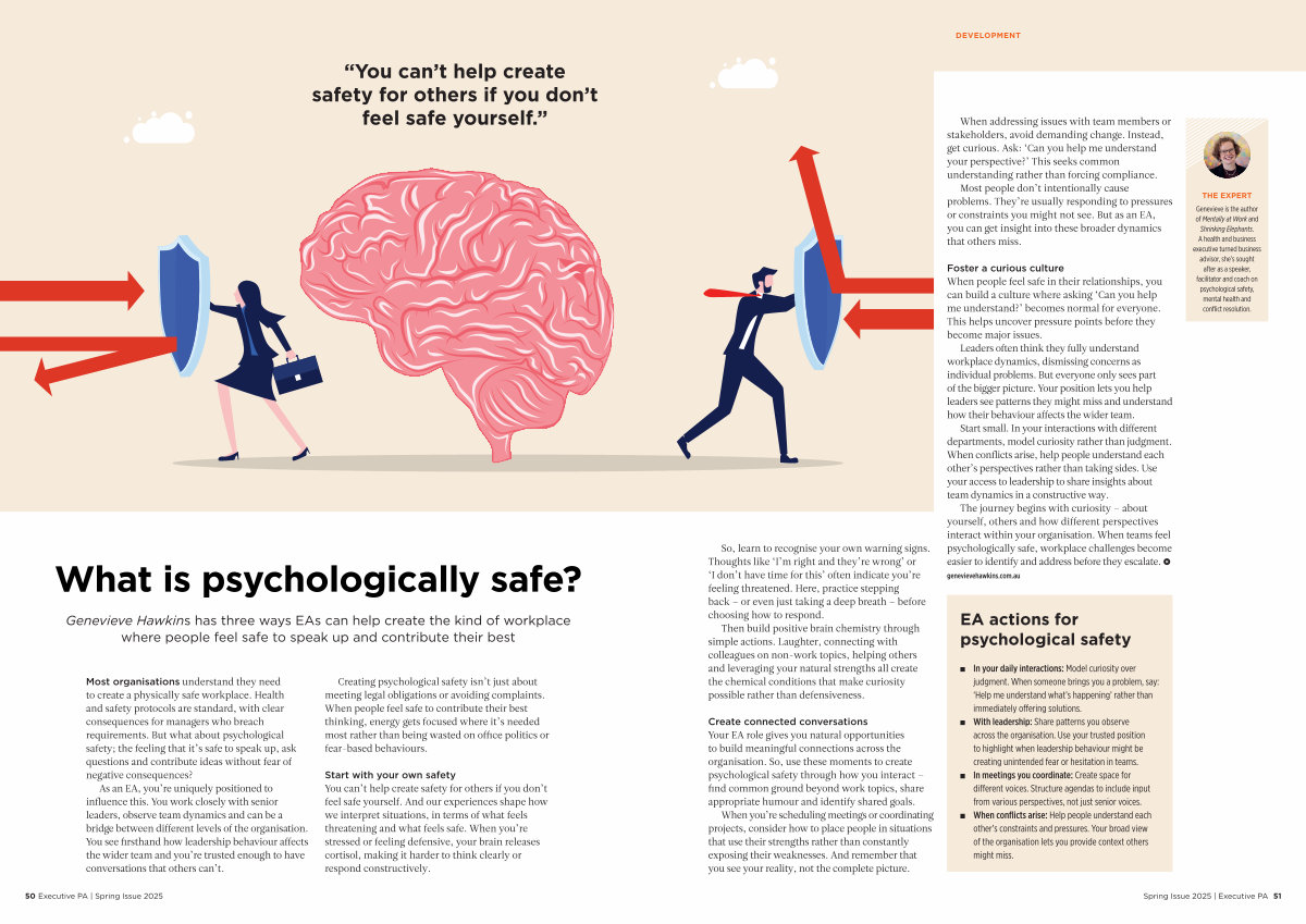 Genevieve Hawkins has three ways EAs can help create the kind of workplace where people feel safe to speak up and contribute their best