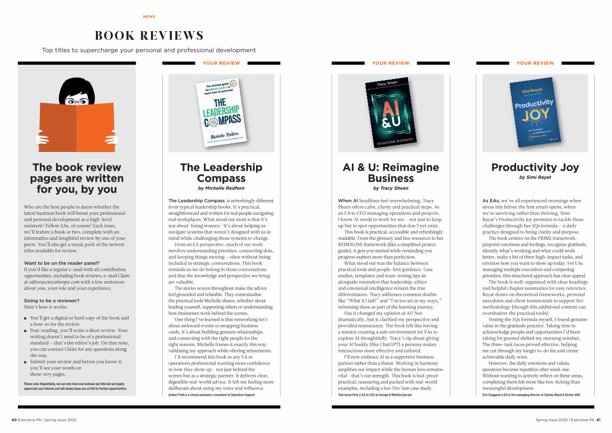 Want to be on the reader panel? If you’ d like a regular e-mail with all contribution opportunities, including book reviews, e-mail Claire at editor @ executivepa. com with a few sentences about you, your role and your experience.