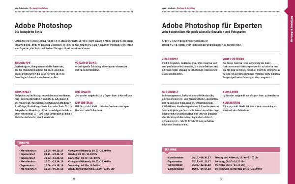 Bildgröße und Auflösung, auswählen und maskieren, Farb- und Tonkorrekturen an Bildern, Arbeiten mit Ebenen und Ebenenmasken, Gestaltung individueller Schriftzüge, Freistellungspfade, Retusche. Basis für die Beispiele des Workshops bildet das erfolgreiche Lehrbuch » Photoshop CC – Schritt für Schritt zum perfekten Bild « des Leiters der epos | akademie.