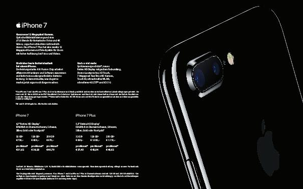Die Displaygröße wird diagonal gemessen. 2 Das iPhone 7 und das iPhone 7 Plus in Diamantschwarz sind mit 128 GB und 256 GB erhältlich. 3 Der