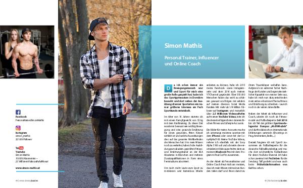 Facebook PersonaltrainerSimonMathis Instagram simon_mathis 321.000 Follower Youtube Simon Mathis 100.000 Abonnenten – 2.5 Millionen Videoaufrufe/Monat www.simon-mathis.at 44 | vierundvierzigkunden