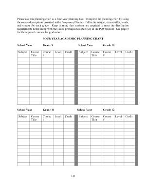 Please use this planning chart as a four-year planning tool . Complete the planning chart by using the course descriptions provided in the Program of Studies . Fill in the subject , course titles , levels , and credits for each grade . Keep in mind that students are required to meet the distribution requirements noted along with the stated prerequisites specified in the POS booklet . See page 5 for the required courses for graduation .
