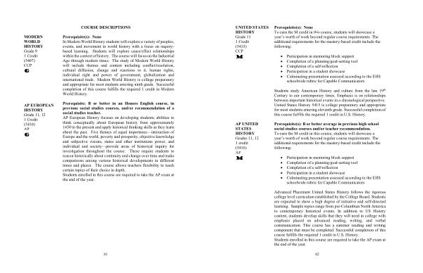 Prerequisite ( s ): B or better average in previous high school social studies courses and / or teacher recommendation . To earn the M credit in this course , students will showcase a year ’ s worth of work beyond regular course requirements . The additional requirements for the mastery-based credit include the following :