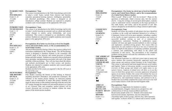 Prerequisite ( s ): None Students will follow the models of individuals who have identified a problem in the world and dedicated themselves to solving it . Community Action will invite guest speakers , including a number of the faculty as expert instructors , and introduce case studies of successful problem solving as part of a semester-long comprehensive curriculum . Working in collaborative teams , students will learn and apply research methods in order to design and implement a problem-solving project . This course offers an opportunity for each student to find his or her area of interest and study it in depth for the purpose of exploring a problem , presenting a solution , and collaborating with others in the school and community to take action . The presentation of the completed problem-solving project will mark the culmination of the course . Prerequisite ( s ): None The American Experience is a full-year course open to junior and senior students that examines historically oppressed social and ethnic groups and analyzes related literature in the United States . This course is split-period and team-taught between social studies and English . Topics of discussion include a social and historical overview of these groups and related civil rights issues in our nation ’ s history . Analysis of related texts will allow us to see the ways in which these groups have overcome oppression and gained agency in our nation . Further , this course will examine the ways in which literature and social movements have contributed to , been influenced by , and transformed America , and continue to do so . Student who successfully complete this course will receive one- half social studies elective credit and one-half English credit .