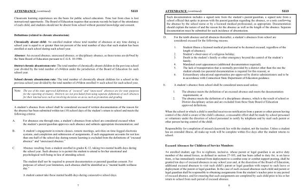 Note : The use of the state approved definitions of “ excused ” and “ unexcused ” absences are for state purposes for the reporting of truancy . Districts are not precluded from using separate definitions of such absences for their internal uses such as involving decisions on areas such as promotion and grading .
