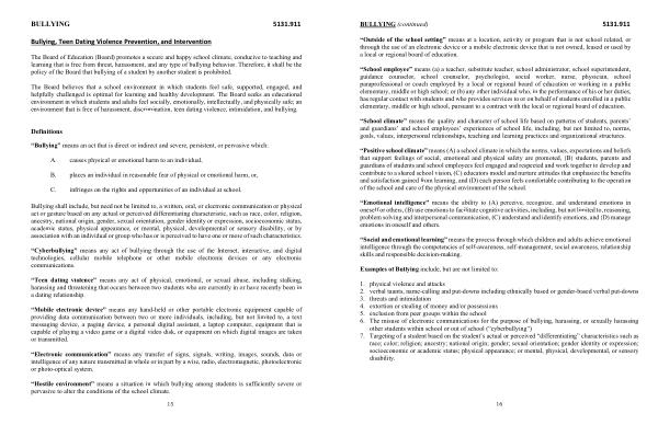 BULLYING ( continued ) 5131.911