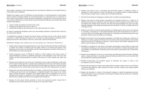 The District ’ s program : ( Also outlined in the section pertaining to the “ Safe School Climate Plan ”).