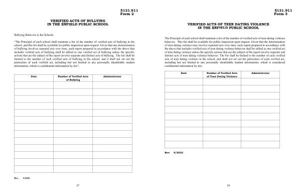 VERIFIED ACTS OF TEEN DATING VIOLENCE IN THE ENFIELD PUBLIC SCHOOL