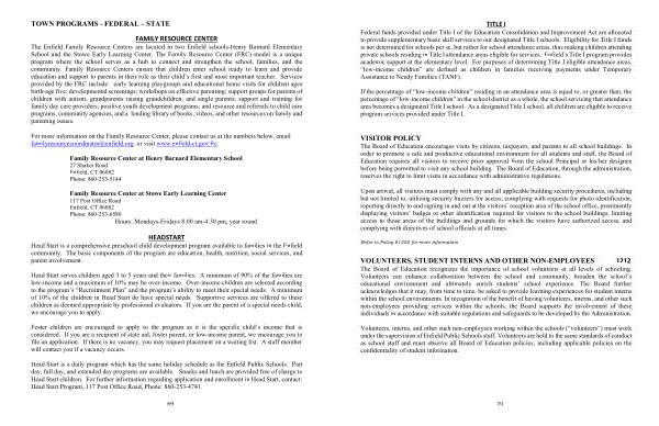 TITLE I Federal funds provided under Title I of the Education Consolidation and Improvement Act are allocated to provide supplementary basic skill services to our designated Title I schools . Eligibility for Title I funds is not determined for schools per se , but rather for school attendance areas , thus making children attending private schools residing in Title I attendance areas eligible for services . Enfield ’ s Title I program provides academic support at the elementary level . For purposes of determining Title I eligible attendance areas , “ low-income children ” are defined as children in families receiving payments under Temporary Assistance to Needy Families ( TANF ).