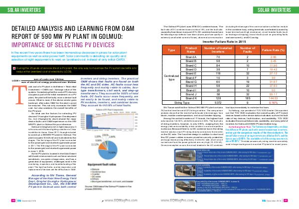 Shi Tianze said that the Golmud 590 MW PV plant contains 702 central inverters and 5372 string inverters. The comparison analysis shows that the inverter faults locate in fan damage, fuse blown, module overtemperature, and circuit breaker tripping.