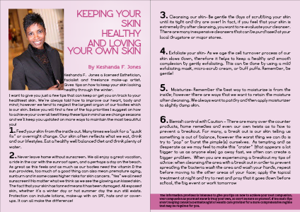 6. Blemish control with Caution – There are many over the counter products, home remedies and even our own twists as to how to prevent a breakout. For many, a break out is our skin telling us something is out of balance, however the worst thing we can do is try to “pop” or burst the pimple(s) ourselves. As tempting and as desperate as we may feel to make this “crater” (that appears a lot bigger to us as anyone else) go away fast, we often can create a bigger problem. When you are experiencing a breakout my tips of advice: when cleansing the area with a break out in order to prevent spreading the bacteria wash the area and wash your hands, repeat before moving to the other areas of your face; apply the topical treatment at night and try to rest and pray that it goes down before school, the big event or work tomorrow