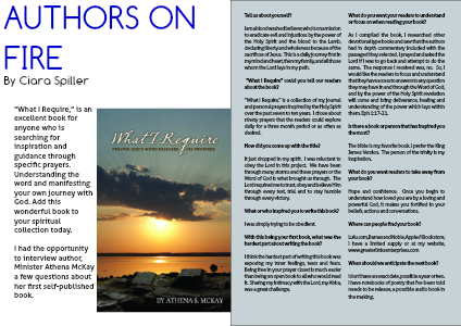 I had the opportunity to interview author, Minister Athena McKay a few questions about her first self-published book.