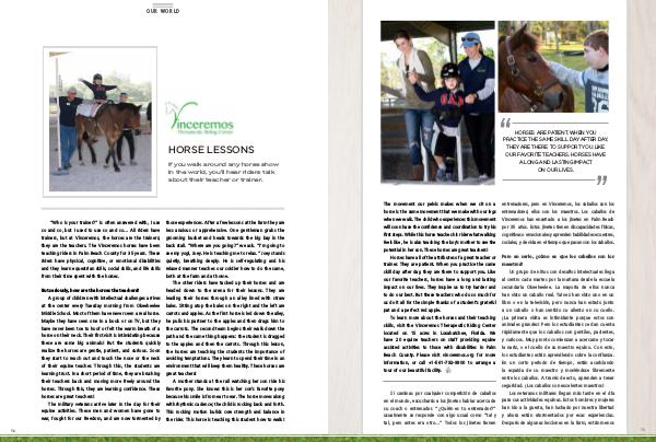 “ Who is your trainer?” is often answered with, I use so and so, but I used to use so and so … All riders have trainers, but at Vinceremos, the horses are the trainers; they are the teachers. The Vinceremos horses have been teaching riders in Palm Beach County for 35 years. These riders have physical, cognitive, or emotional disabilities and they learn equestrian skills, social skills, and life skills from their time spent with the horses.