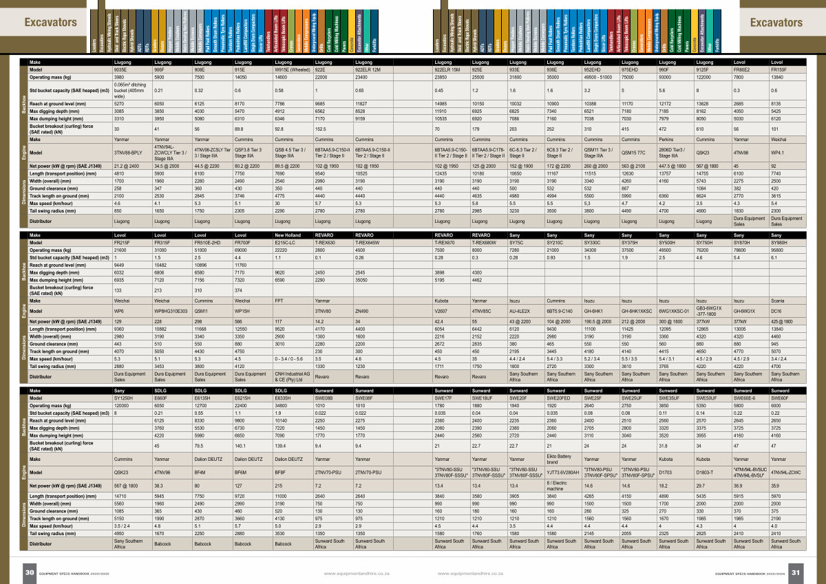 30 EQUIPMENT SPECS HANDBOOK 2025 / 2026 www. equipmentandhire. co. za