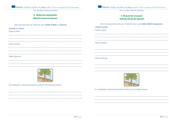 Peste tot omul produce deșeuri. Produsele uzate sunt solide, lichide sau gazoase. Căutați exemple: Deșeuri solide: _______________________________________________________________________________________________________________ _______________________________________________________________________________________________________________ _______________________________________________________________________________________________________________ Deșeuri lichide-
