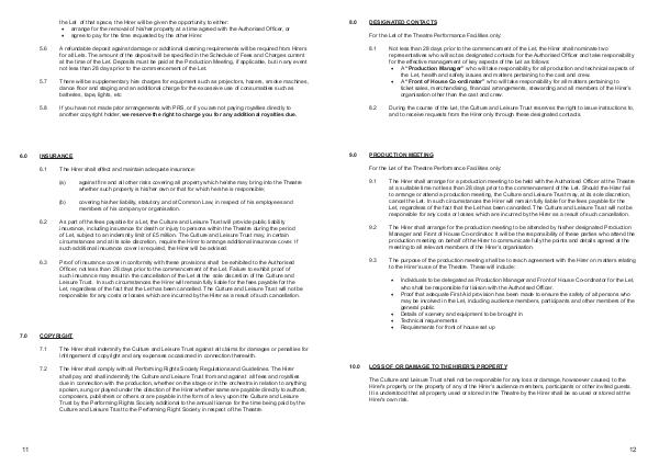 9.1 The Hirer shall arrange for a production meeting to be held with the Authorised Officer at the Theatre