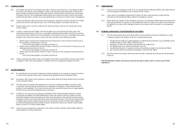 29.3 The Hirer shall not advertise the performance or event by unauthorised display of posters or bills.