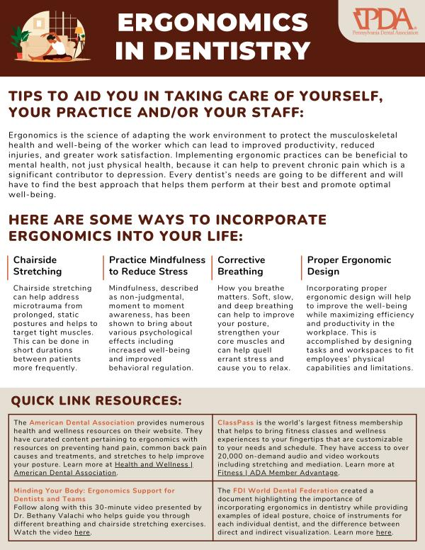 Chairside stretching can help address microtrauma from prolonged , static postures and helps to target tight muscles . This can be done in short durations between patients more frequently . |