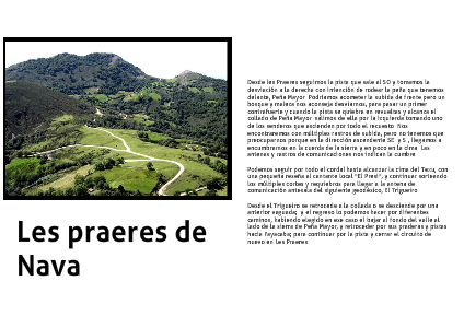 Desde les Praeres seguimos la pista que sale al SO y tomamos la desviación a la derecha con intención de rodear la peña que tenemos delante, Peña Mayor. Podríamos acometer la subida de frente pero un bosque y maleza nos aconseja desviarnos, para pasar un primer contrafuerte y cuando la pista se quiebra en revueltas y alcanza el collado de Peña Mayor salimos de ella por la izquierda tomando uno de los senderos que ascienden por todo el recuesto. Nos encontraremos con múltiples rastros de subida, pero no tenemos que preocuparnos porque en la dirección ascendente SE. y S., llegamos a encumbrarnos en la cuerda de la sierra y en poco en la cima. Las antenas y rastros de comunicaciones nos indican la cumbre.
