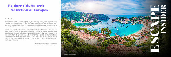 Explore this superb collection of vacations to start your dreaming. When you are ready to get away, remember your travel advisor can offer you expert advice, special amenities and pricing to help you enjoy your ultimate escape. We have the education and connections to provide you with a personalized escape and unforgettable memories to last a lifetime. You can trust the professionals at our agency to plan every detail of your vacation, so you can focus on enjoying each other and all of your destinations’ delights.