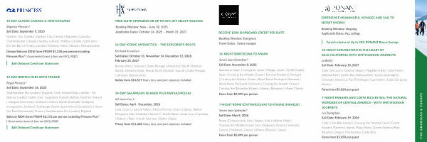 Enjoy a Free Beverage Package and a Shipboard Credit up to $ 800 plus up to 30 % off Select Sailings and 50 % Reduced Deposits. Combined with the Always Free Amenities of Your World Included™