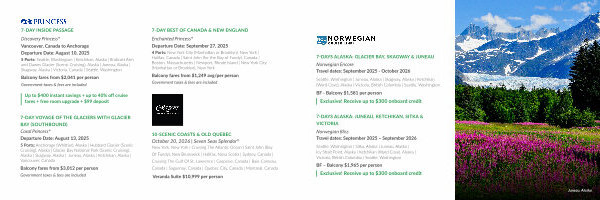 Balcony fares from $ 799 per person Government taxes & fees are included