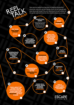 Now you ’ ve read all our top tips to creating the perfect showreel , why not use our handy check list to help you get your showreel ready ? You can download the pdf version of the guide and edit it to tick the checklist boxes as you go .