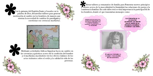 Dictar talleres y semanarios de familia para Fomentar nuevos principios y valores acerca de la masculinidad, la feminidad, las relaciones de pareja y la convivencia familiar. En cada taller será se vital importancia la participación de los hombres, donde sé que transmitan mensajes como: