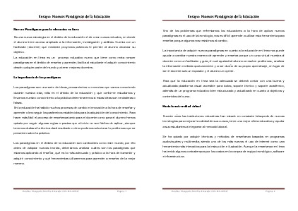 paradigmas en el ámbito de enseñar y aprender; facilita al estudiante el adquirir conocimiento