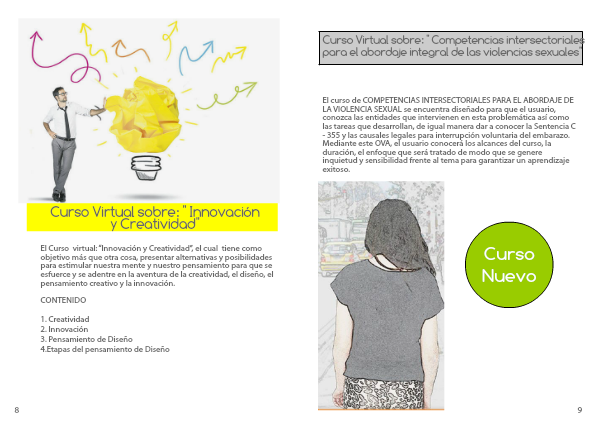 El Curso virtual: “Innovación y Creatividad”, el cual tiene como objetivo más que otra cosa, presentar alternativas y posibilidades para estimular nuestra mente y nuestro pensamiento para que se esfuerce y se adentre en la aventura de la creatividad, el diseño, el pensamiento creativo y la innovación.
