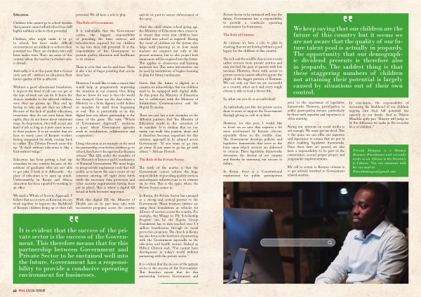In Kenya , the Private Sector has emerged as a strong and critical partner to the Government . Many business entities are using their foundations as vehicles for delivery of services across the country . For example , the Wings to Fly Scholarship Program run by the Equity Group Foundation has to date reached over 5.4 million beneficiaries through its social protection programs . The church in Kenya has also been in the forefront of partnering with the Government especially in the education and health sectors . Indeed as Hillary Clinton said , “ You cannot have development in today ' s world without partnering with the private sector .”