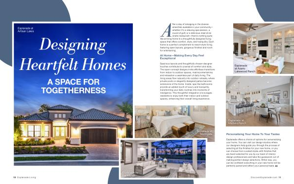 Esplanade offers a choice of options for personalizing your home . You can visit our design studios where our designers help guide you through the process of selecting all the finishes for your new home , or you can choose from curated styles with finishes that are hand-selected for you by our team of interior design professionals and take the guesswork out of making perfect design selections . Either way , you can be confident everything in your new home will be perfectly paired and reflect your personal taste .