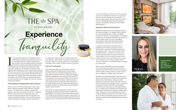 Ultimately , the Spa at Esplanade is more than just a place for pampering . It ’ s a sanctuary that seamlessly blends luxury with wellness , creating a holistic experience for all . Every aspect of the spa — from its top-tier treatments to its signature scent — is designed to elevate the quality of life within the Esplanade community . So , as you step out of the spa and back into your daily routine , remember that the essence of Esplanade ’ s commitment to wellness is always within reach , waiting to be revisited whenever you need to recharge . Whether at the spa or in the comfort of your home , the Spa at Esplanade ensures that every day holds the promise of unparalleled relaxation whenever you desire .