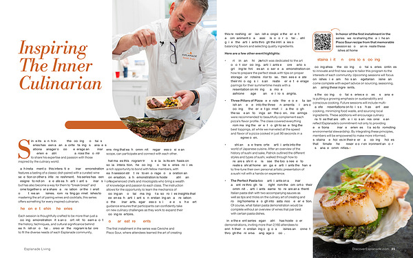 As the Cooking & Cocktails Series evolves , Esplanade is putting a growing emphasis on sustainability and conscious cooking . Future sessions will include multifaceted presentations on topics such as plant-based cooking , minimizing food waste , and sourcing local ingredients . These additions will encourage culinary practices that are both delicious and responsible and reflect Esplanade ’ s commitment not only to providing exceptional culinary experiences but also to promoting environmental stewardship . By integrating these principles , members will be empowered to make more informed , sustainable choices in their everyday cooking , choices that ultimately help preserve our environment and our Esplanade communities .