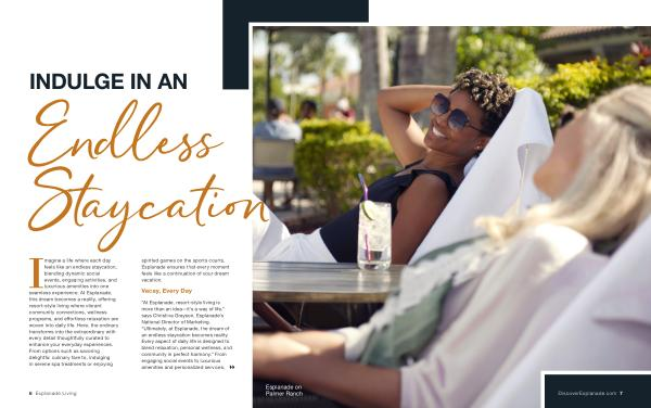 “ At Esplanade , resort-style living is more than an idea — it ’ s a way of life ,” says Christina Grayson , Esplanade ’ s National Director of Marketing . “ Ultimately , at Esplanade , the dream of an endless staycation becomes reality . Every aspect of daily life is designed to blend relaxation , personal wellness , and community in perfect harmony .” From engaging social events to luxurious amenities and personalized services ,