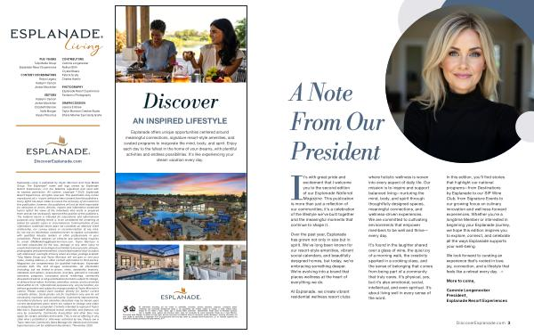 It’ s with great pride and excitement that I welcome you to the second edition of our Esplanade National Magazine. This publication is more than just a reflection of our communities; it’ s a celebration of the lifestyle we’ ve built together and the meaningful moments that continue to shape it.
