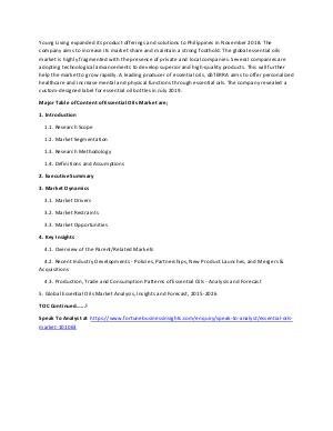 Major Table of Content of Essential Oils Market are;