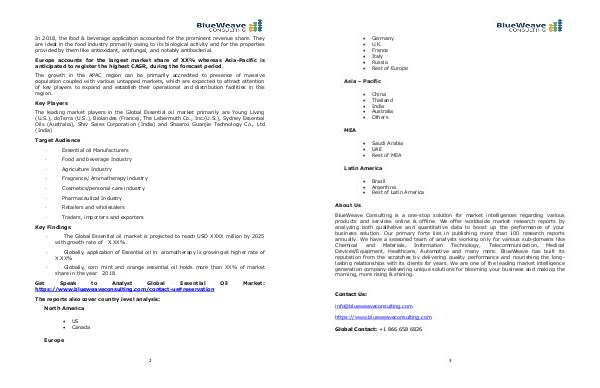 · Globally, application of Essential oil in aromatherapy is growing at higher rate of