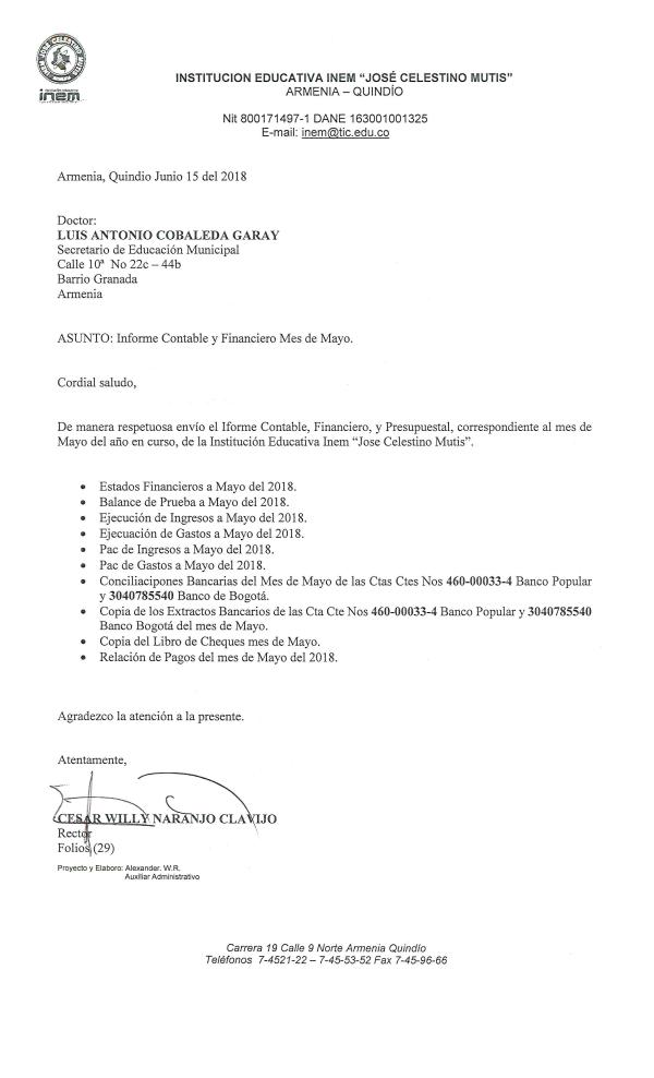 Estado Financiero Mayo Informe Contable Mes de Mayo del 2018