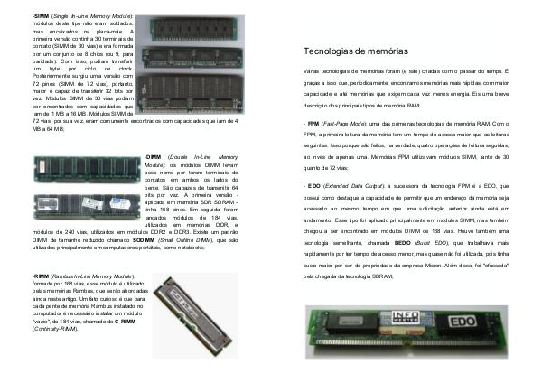 ao invés de apenas uma. Memórias FPM utilizavam módulos SIMM, tanto de 30