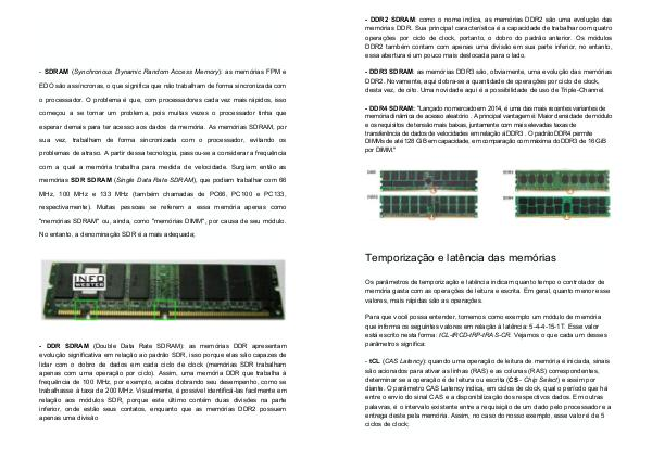 - DDR4 SDRAM: "Lançado no mercado em 2014, é uma das mais recentes variantes de